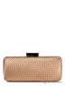 Стильный жесткий клатч с большой застежкой и оригинальной плетеной блестящей экокожей. Вместительный. Подкладка - скоричневый сатин, фурнитура - никель. Длинный съемный плечевой ремешок - цепочка. 10-23-5см