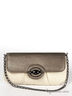 Небольшой клатч из двух материалов - основная часть из мягкой соломки, а клапан выполнен из блестящей экокожи. Подкладка - бежевый сатин, фурнитура - никель. Небольшой и аккуратный замочек. Длинный съемный плечевой ремень - цепочка. 13(31)-25-2см