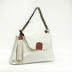 Небольшая сумка с основным отделом под клапаном, декорированным вставкой из контрастной коричневой экокожи, и небольшой кистью с лицевой стороны. Основной отдел закрывается на молнию и содержит разного типа карманы. Подкладка - бежевый хлопок, фурнитура - никель. Съемный регулируемый плечевой ремень из экокожи и короткая ручка из контрастной коричневой экокожи с металлом.