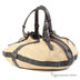 Изящная женская сумка из рогожки с элементами экокожи. Стенки изделия средней плотности. Основной отдел закрывается на молнию и содержит разного типа карманы. Ручки средней длины позволяют носить сумку на плече.