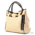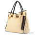 Изящная женская сумка из рогожки с элементами экокожи. Стенки изделия средней плотности. Основной отдел закрывается на застежку и содержит разного типа карманы. С внешней стороны расположены два втачных кармана. Ручки средней длины позволяют носить сумку на плече.