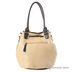 Изящная женская сумка из рогожки с элементами экокожи. Стенки изделия средней плотности. Основной отдел закрывается на застежку и содержит разного типа карманы. С внешней стороны расположены два втачных кармана. Ручки средней длины позволяют носить сумку на плече.