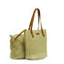 Вместительная сумка-корзинка из экокожи с крупной перфорацией и средней длины мягкими ручками из контрастной коричневой экокожи. Внутренний отдел - холщевый мешочек закрывается на молнию и может быть отстегнут от сумки. Подкладка - бежевый хлопок, фурнитура - светлое золото. Жесткое дно.