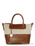 Любовь подавляющего большинства женщин к сумкам и сумочкам – вполне объяснима. Чем еще заменишь такой по-настоящему функциональный и удобный предмет, из которого можно извлечь все, что угодно, от косметики до йоркширского терьера, в котором хранится уйма вещей, всегда необходимых под рукой? Сумка женская, натуральная кожа с текстилем. Прямоугольной формы, на молнии, внутри карман на молнии и один карман для телефона, на лицевой стороне изделия карман на молнии. Сумка комбинирована из кожи и контрастного вида ткани, есть регулируемый съемный ремень, дно на ножках из металла, на ручках брелок с логотипом марки. Размер: 41*27*15,5 см.