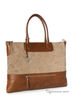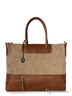 Сумка женская, натуральная кожа с текстилем. Прямоугольной формы, на молнии, внутри карман на молнии и один карман для телефона, на лицевой стороне изделия карман на молнии. Сумка комбинирована из кожи и контрастного вида ткани, есть регулируемый съемный ремень. Размер: 47*37.