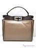 Элегантная женская сумка жесткой формы. Двуцветный стильный дизайн. Натуральная кожа специальной обработки. Модель 2013 года. Два отделения на фурнитурных застежках. Внутри- подкладка с фирменным логотипом, кожаный ремешок с карабином для ключей, карман на молнии, кармашек для мобильного телефона. Одна короткая ручка и длинная съемная ручка. Фурнитура - серебристый матовый металл.