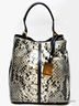 Сумка женская, из телячьей кожи с отделкой под кожу питона, одна маленькая ручка из кожи (так же в комплекте есть длинная ручка через плечо), два отделения на фурнитурных клипсах, внутри есть кармашек на молнии, так же есть карман для мобильного телефона и ремешок для ключей, сбоку сумки имеется карман на молнии.