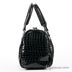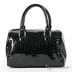 Стильная изящная сумка из натуральной лакированной кожи с тиснением. Сумка имеет мягкие стенки. Основное отделение застегивается на металлическую молнию. Внутри одно большое отделение, один небольшой карман на молнии и два открытых кармашка для кошелька и мобильного. Удобные ручки из жесткой кожи с тиснением. Ножек нет. Цвет фурнитуры - серебро.