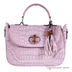 Сумка-портфель имеет жесткую форму, выполнена из экокожи с тиснением под рептилию. Модель закрывается на крышку с поворотным замком. Внутри два отделения, разделенных средником на молнии. Имеется внутренний открытый карман для мелких предметов и для мобильного телефона, карман для документов на молнии. Украшена сумка двумя милыми кисточками.