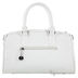Модель выполнена из лакированной экокожи с тиснением под рептилию, имеет жесткую форму. Сумка состоит из одного отделения, которое закрывается на молнию. Внутри два кармана на молнии с одной стороны, а также два дополнительных открытых кармана для мелких предметов и для мобильного телефона с другой. На тыльной стороне сумки также имеется горизонтальный карман на молнии. Цвет фурнитуры - блестящее серебро.