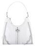 Клатч выполнен из экокожи с тканевой подкладкой, декорирован перфорацией и фурнитурой. Сумка состоит из одного отделения, закрывается на молнию и крышку с поворотным замком. Внутри имеется карман на молнии для документов, карман для мелочей и мобильного телефона. На тыльной стороне расположен горизонтальный карман на молнии.