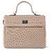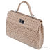 Модель имеет жесткую форму, выполнена из экокожи с тиснение под страуса. Сумка закрывается на крышку на замочке. Внутри два отделения, разделенных средником на молнии. Имеется внутренний открытый карман для мелких предметов и для мобильного телефона, карман для документов на молнии. В комплекте имеется съемный плечевой ремень.