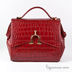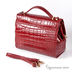 Модель выполнена из экокожи с тиснением под рептилию, имеет жесткую форму. Внутри - одно отделение, имеется внутренний открытый карман для мелких предметов и карман для мобильного телефона, также есть два кармана на молнии с другой стороны. Сумка закрывается на общую молнию и крышку с оригинальным замком. В комплект входит съемный регулируемый ремешок 120 см. На дне сумки металлические ножки. Цвет фурнитуры - блестящее золото