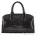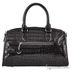 Модель выполнена из лакированной экокожи с тиснением под рептилию, имеет жесткую форму. Сумка состоит из одного отделения, которое закрывается на молнию. Внутри два кармана на молнии с одной стороны, а также два дополнительных открытых кармана для мелких предметов и для мобильного телефона с другой. На тыльной стороне сумки также имеется горизонтальный карман на молнии. Цвет фурнитуры - блестящее серебро.
