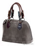 Лаконичная модель выполнена из экокожи с тиснением под рептилию, имеет жесткую форму. Состоит сумка из одного отделения и закрывается на молнию. Имеется внутренний карман на молнии, а также два дополнительных открытых кармана для мелких предметов и для мобильного телефона. На дне сумки имеются ножки. Цвет фурнитуры - блестящее серебро.