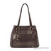 Модель выполнена из экокожи с перламутровым отливом с тиснением под рептилию. Сумка закрывается на поворотный замок. Внутри два отделения, разделенных средником на молнии, имеется внутренний карман на молнии, а также открытый карман для мелких предметов и для мобильного телефона. Цвет фурнитуры - блестящее золото. Длина ручек позволяет носить сумку на плече.