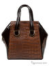 Модель выполнена из экокожи с тиснением под крокодила/лакированной экокожи, имеет жесткую форму. Внутри модели - одно отделение, имеется карман на молнии, открытый карман для мелких предметов и карман для мобильного телефона, также имеется горизонтальный карман на молнии с тыльной стороны. Сумка закрывается на молнию. Цвет фурнитуры - блестящее серебро.