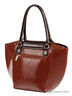 Модель выполнена из лакированной экокожи, имеет жесткую форму. Состоит сумка из одного отделения и закрывается на молнию и крышку с оригинальным замком. Имеется внутренний карман на молнии, а также два дополнительных открытых кармана для мелких предметов и для мобильного телефона. На тыльной стороне сумки также горизонтальный карман на молнии. На дне сумки имеются ножки. Цвет фурнитуры - блестящее серебро.