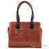 Модель выполнена из экокожи с тиснением под змею, имеет жесткую форму. Сумка состоит из двух отделений, разделенных средником на молнии, и закрывается на общую молнию. Внутренние кармашки: открытый кармашек, кармашек для сотового телефона и закрытый кармашек на молнии. На тыльной стороне сумки горизонтальный кармашек на молнии. Длина ручек позволяет носить сумку на плече.