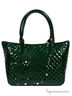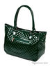 Модель выполнена из лакированной экокожи, декорирована стежкой в виде ромба, вышивкой и фурнитурой, имеет жесткую форму. Внутри модели - одно большое отделение, имеется 2 кармана на молнии, открытый карман для мелких предметов и карман для мобильного телефона, также имеется горизонтальный карман на молнии с тыльной стороны. Сумка закрывается на молнию. Цвет фурнитуры - блестящее золото. Длина ручек позволяет носить сумку на плече.