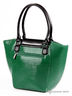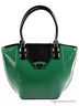 Модель выполнена из лакированной экокожи, имеет жесткую форму. Состоит сумка из одного отделения и закрывается на молнию и крышку с оригинальным замком. Имеется внутренний карман на молнии, а также два дополнительных открытых кармана для мелких предметов и для мобильного телефона. На тыльной стороне сумки также горизонтальный карман на молнии. На дне сумки имеются ножки. Цвет фурнитуры - блестящее серебро.