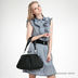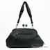 Одна сторона декорирована прострочкой в виде волны. Основное отделение застегивается на рамочный замок. Один карман на внешней стороне сумки. Внутри один карман на молнии для документов + два маленьких кармана для визиток или кредитных карт. Низ сумки декорирован молнией. Оригинальная съемная ручка-ремень. Ножек нет.