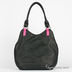 Женская сумка из искусственной кожи гладкой фактуры. Сумка имеет мягкие стенки. Застежка на молнию. Без наплечного ремня. Две мягкие ручки, удобные для носки на плече. Сумка декорирована контрастными вставками и молнией. Внутри три больших отделения. Формованное твердое дно без ножек.
