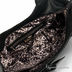 Женская сумка из искусственной кожи рельефной фактуры. Сумка имеет мягкие стенки. Застежка на молнию. Один карман на молнии на задней стенке. Два открытых боковых кармана. Наплечный ремень отстегивается, регулируется по длине. Сумка декорирована бантом с цепью. Внутри одно большое отделение, разделенное средником на молнии. Карман на молнии, карман для мобильного телефона. Твердое формованное дно без ножек.