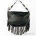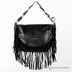 Стильная сумка из искусственной кожи рельефной фактуры. Сумка имеет мягкие стенки. Застежка на молнию. Один карман на молнии на задней стенке. Наплечный ремень отстегивается, регулируется по длине. Сумка декорирована бахромой. Внутри одно большое отделение. Карман на молнии, карман для мобильного телефона. Твердое дно без ножек.