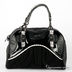 Женская сумка из искусственной кожи гладкой фактуры. Сумка имеет мягкие стенки. Застежка на молнию. Две жесткие ручки на цепях. Сумка декорирована замшевой и лаковой вставками. Внутри одно большое отделение. Карман на молнии, карман для мобильного телефона. Твердое дно без ножек.