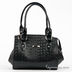 Элегантная женская сумка из искусственной фактурной кожи. Стенки изделия плотные. Сумка декорирована имитацией кожи рептилии. Один внешний карман на молнии. Основное отделение застегивается на молнию и хлястик. Внутри два открытых кармашка и один прорезной карман на молнии. Внутренняя часть разделена текстильной перегородкой на молнии. Подкладка текстиль. Ручки средней длины позволяют носить сумку на плече. Цвет фурнитуры - серебристый, ножки отсутствуют. Дно плотное формованное.