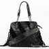 Элегантная женская сумка из искусственной кожи. Стенки изделия мягкие. Передняя часть сумки декорирована имитацией кожи рептилии и вставками из натуральной замши. По бокам оригинальная бахрома из замши. Один внешний карман на молнии. Основное отделение застегивается на молнию. Внутри два открытых кармашка и один прорезной карман на молнии. Внутренняя часть разделена текстильной перегородкой на молнии. Подкладка текстиль. Ручки средней длины позволяют носить сумку на плече. Цвет фурнитуры - темный металлик, ножки отсутствуют. Дно плотное формованное.