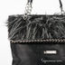 Элегантная женская сумка из искусственной кожи. Стенки изделия мягкие. Передняя часть сумки декорирована мехом и металлической цепочкой. Один внешний карман на молнии. Основное отделение застегивается на молнию. Внутри два открытых кармашка и один прорезной карман на молнии. Подкладка текстиль. Ручки средней длины позволяют носить сумку на плече. Цвет фурнитуры - серебристый, ножки отсутствуют. Дно плотное формованное.