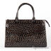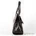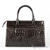 Женская сумка из искусственной лаковой кожи рельефной фактуры. Сумка имеет жесткие стенки. Застежка на молнию. Один карман на молнии на задней стенке. Один карман с клапаном на кнопке на передней стенке. Наплечный ремень отстегивается, не регулируется по длине. Внутри одно большое отделение, разделенное средником на молнии. Карман для мобильного телефона. Твердое формованное дно, без ножек.