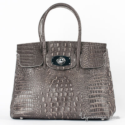 Элегантная женская сумка из натуральной фактурной кожи. Стенки изделия плотные. Основное отделение застегивается на оригинальный клапан с поворотным замком. Внутри один карман на молнии. Подкладки нет. Небольшие ручки. Цвет фурнитуры - серебристый, пять металлических ножек. Дно плотное формованное.