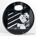Оригинальная небольшая сумка из искусственной кожи, стилизованная под грампластинку. На передней стенке принт. Прорезные овальные ручки. Декоративная прострочка.