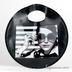 Оригинальная небольшая сумка из искусственной кожи, стилизованная под грампластинку. На передней стенке принт. Прорезные овальные ручки. Декоративная прострочка.