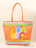 Яркая сумка выполнена из текстиля. С внешней стороны изделия расположен карман на молнии. Сумка свободно вмещает формат А4. Основное отделение застегивается на молнию. Внутри одно отделение. Ручки средней длины позволяют носить изделие на плече. Дно мягкое.