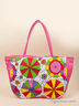 Яркая сумка выполнена из текстиля. С внешней стороны изделия расположен карман на молнии. Сумка свободно вмещает формат А4. Основное отделение застегивается на молнию. Внутри одно отделение. Ручки средней длины позволяют носить изделие на плече. Дно мягкое.