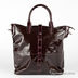 Фактурная лакированная женская сумка. Сумка имеет мягкие стенки. Застегивается на молнию. Отстегивающийся наплечный ремень на карабинах. Небольшие лаковые ручки. Внутри три больших отделения и карман на стенке из лакированной кожи. Формовое дно на металлических ножках.