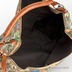Текстильная сумка с мягкими стенками. Застегивается на молнию. Внутри одно большое отделение. Короткая кожаная ручка на кольцах-карабинах. В комплект входит кошелек на молнии в цвет сумки и дополнительная ручка.