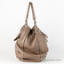 Модная мешковатая сумка из натуральной фактурной кожи. Стенки изделия мягкие. Внешняя часть декорирована мелкими клепками. Боковые стороны сжаты в небольшие складки. Основное отделение застегивается на оригинальный замок. Внутри одно большое отделение, один кармашек на молнии и два небольших открытых отдела. Плотные удобные прошитые ручки. Цветной подклад из текстиля. 4 металлические ножки. Цвет фурнитуры - серебро.