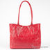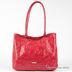 Сумка женская из глянцевой кожи. Без подкладки, внутри один карман, ручка петлей удлиненная, на лицевой стороне логотип, застежка магнит, кожа перфорированная.