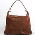 Изящная женская сумка из замши. Стенки изделия мягкие. На передней части сумки прорезной карман на молнии. Основное отделение застегивается на молнию. Внутри прорезной карман на молнии, 2 кармана для документов. Ручки отстегивающиеся, короткие. Цвет фурнитуры - серебро, ножки отсутствуют. Дно формованное.