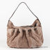 Изящная сумка из натуральной замши. Стенки изделия мягкие. Передняя и задняя часть дополнены карманами на магнитной клепке. Основное отделение застегивается на металлическую молнию. Внутри одно большое отделение, разделенное мягкой перегородкой. Один кармашек на молнии и два небольших открытых отдела. Одна небольшая тонкая прошитая ручка из кожи. Подклад из текстиля. Ножек нет. Цвет фурнитуры - серебро.
