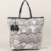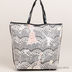 Летняя повседневная сумка из ткани с кружевом и лакированными вставками. Один основной отдел на молнии. Внутри прорезной карман на молнии, 2 накладных кармашка. Короткие ручки. Дно формованное.