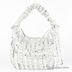 Оригинальная женская сумка из искусственной кожи. Передняя часть сумки декорирована бусинками. Один внешний карман на молнии. Основное отделение застегивается на молнию. Внутри два открытых кармашка и два кармашка на молнии. Подкладка текстиль. Ручки средней длины позволяют носить сумку на плече. Ножки отсутствуют. Дно формованное.