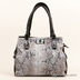 Элегантная женская сумка из экокожи со вставкой из натуральной кожи. Стенки изделия мягкие. Передняя часть сумки декорирована вставкой из натуральной кожи с лазерной обработкой под рептилию. Один внешний карман на молнии. Основное отделение застегивается на поворотный замок и на молнию. Внутри два открытых кармашка и один прорезной карман на молнии. Подкладка текстиль. Ручки средней длины позволяют носить сумку на плече. Цвет фурнитуры - серебро, ножки металлические. Дно жесткое, формованное.