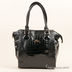 Элегантная женская сумка из натуральной фактурной, лаковой кожи. Стенки изделия твердые. Передняя часть сумки декорирована логотипом бренда. Один внешний карман на молнии. Основное отделение застегивается на молнию. Внутри два открытых кармашка и один прорезной карман на молнии. Подкладка текстиль. Ручки средней длины позволяют носить сумку на плече. Цвет фурнитуры - золото, ножки металлические. Дно жесткое, формованное.