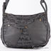 Оригинальная женская сумка из искусственной кожи. Один внешний карман на молнии. Основное отделение застегивается на молнию. Внутри один прорезной карман на молнии и два открытых кармашка. Подкладка текстиль. Ремешок позволяют носить сумку на плече. Цвет фурнитуры - серый, ножки отсутствуют. Дно формованное.